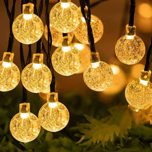 Guirlande guinguette solaire - Guirlande globe en cristal blanche chaude