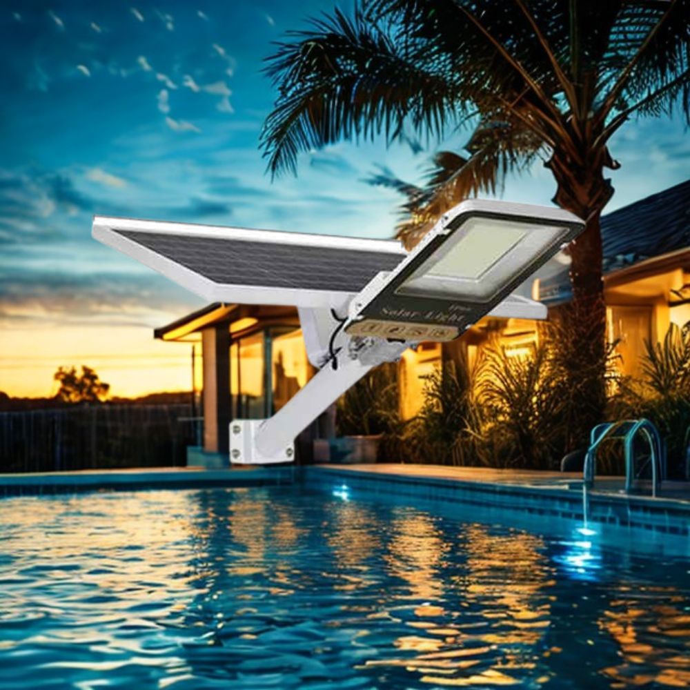 Accessoires : télécommande (Télécommande sans fil de 8 m de distance), vis d'installation, manuel d'instructions, luminaire, panneau solaire. Support d'installation