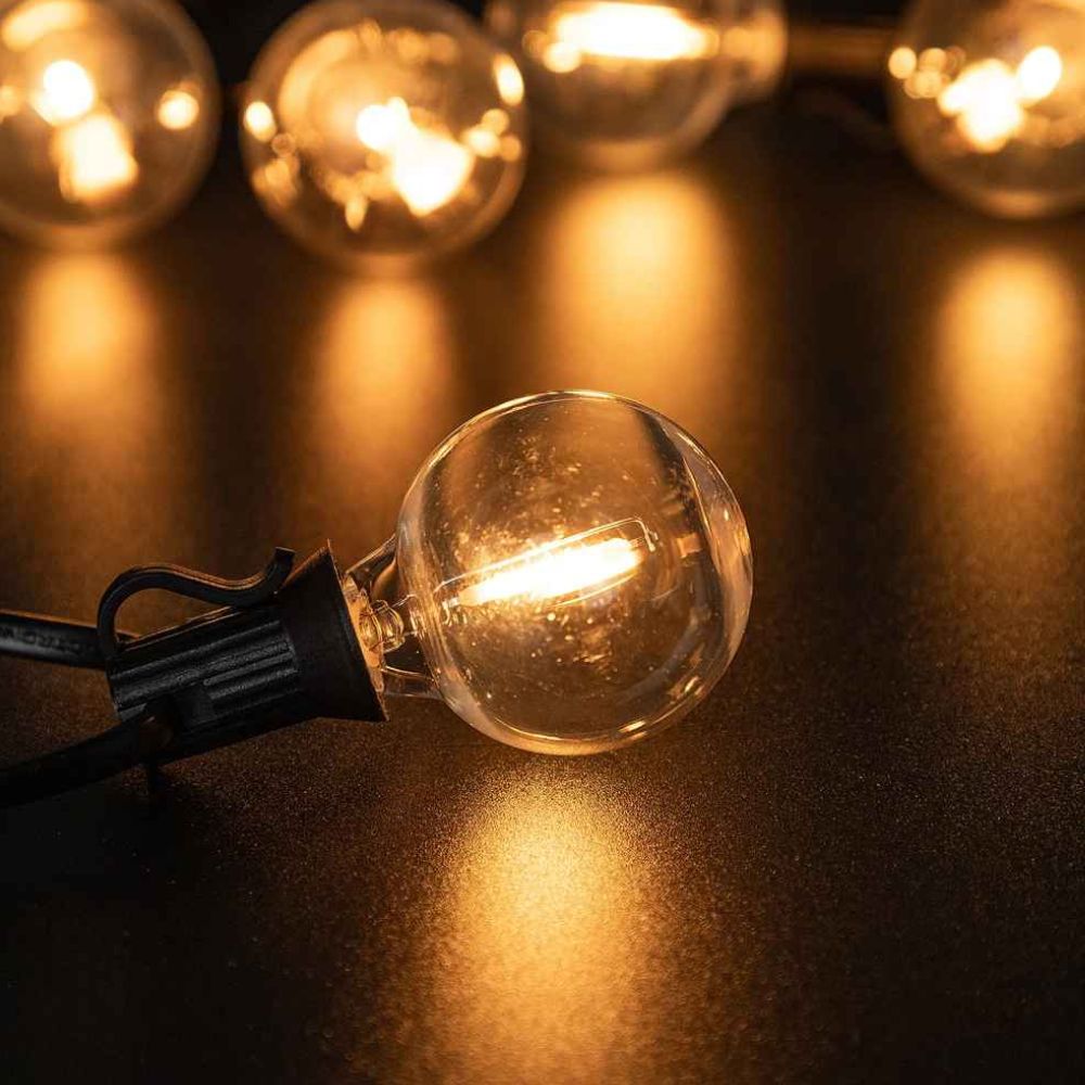 Ces guirlandes de type guinguette sont dotées d'ampoules E12 incassables, aussi connues sous le nom de lumières de café ou de bistro.