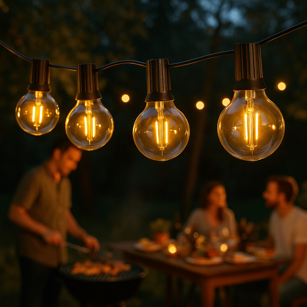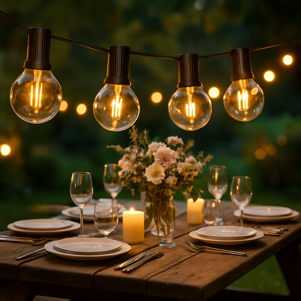 Un simple dßner entre amis devient une soirée mémorable sous les lueurs délicates d'une guirlande guinguette.